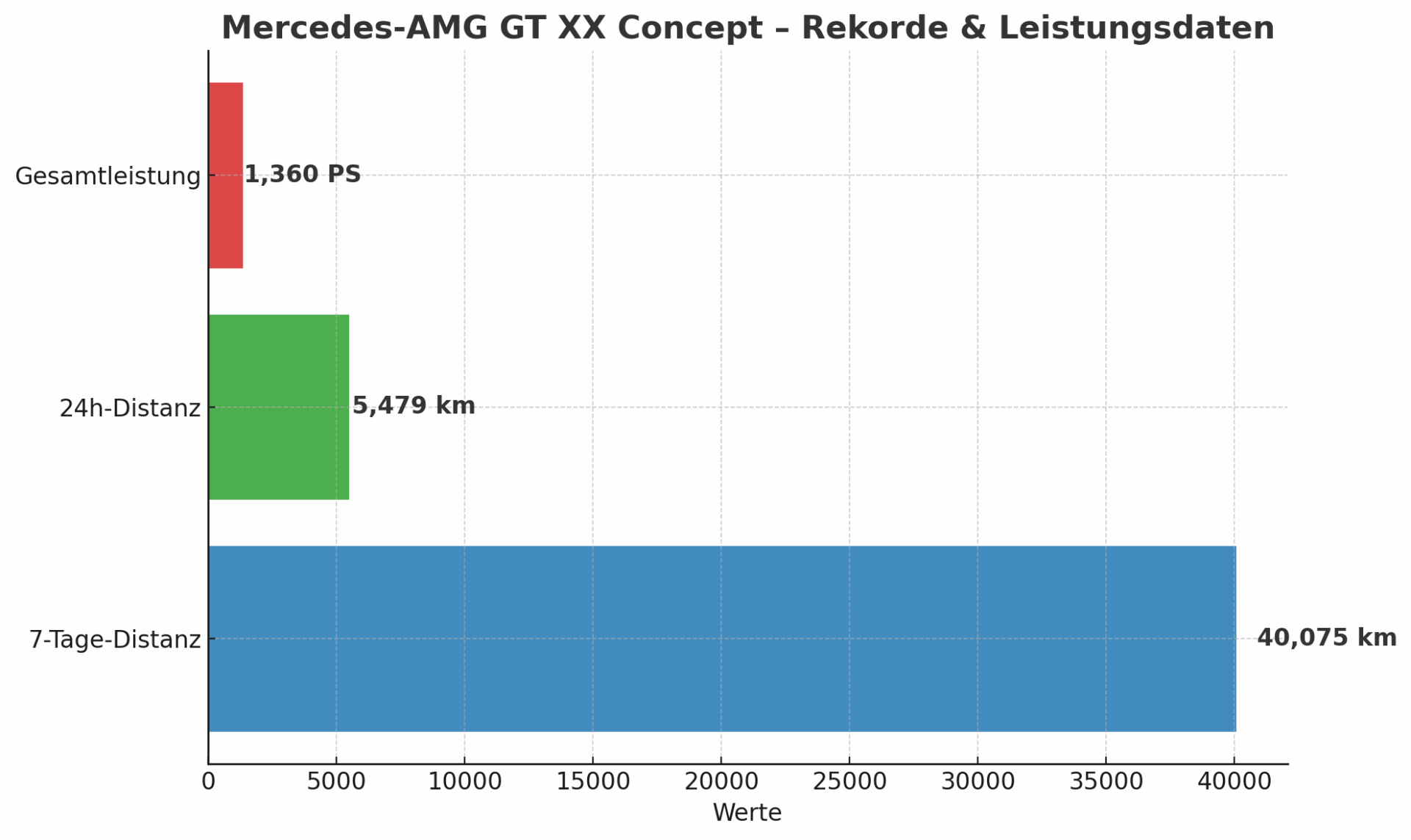 Im August 2025 demonstrierte der Mercedes-AMG GT XX Concept auf der traditionsreichen Nardò Teststrecke in Italien eindrucksvoll seine Fähigkeiten. Innerhalb von sieben Tagen, 13 Stunden, 24 Minuten und 7 Sekunden legte das Elektrofahrzeug eine Distanz von 40 075 Kilometern zurück – nahezu dem Erdumfang entsprechend. Damit sicherte sich das Modell einen Platz in den Geschichtsbüchern der Elektromobilität.