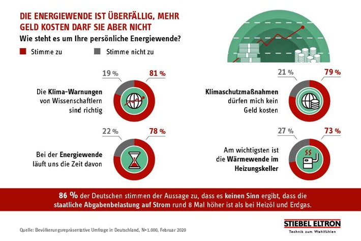 Holzminden (ots) – 83 Prozent der Bundesbürger unterstützen die Einhaltung der Pariser Klimaschutzziele. Wenn Klimaschutz allerdings konkret wird, zeigen sich 51 Prozent ausdrücklich kostenempfindlich – 79 Prozent räumen dies zumindest tendenziell ein. Gleichzeitig halten knapp zwei Drittel klima- und umweltfreundliches Wohnen für wichtig bis sehr wichtig. Das sind Ergebnisse aus dem Energie-Trendmonitor 2020 von Stiebel Eltron. Dafür wurden 1.000 Bundesbürger bevölkerungsrepräsentativ befragt.