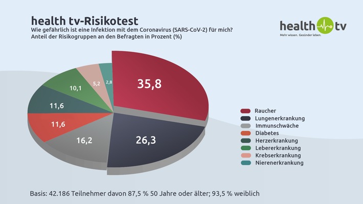 Über 42.000 Teilnehmer nutzten den Corona-Risikotest von health tv / Ein Drittel der Befragten ist von mehreren Risikofaktoren betroffen