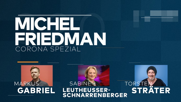 Berlin (ots) – Am Samstag um 16.10 Uhr zeigt WELT die dritte Folge von „Michel Friedman – Corona Spezial“. Wieder gibt es drei etwa zwölfminütige Gespräche zu den Themen, die uns in Zeiten der Corona-Pandemie bewegen. Diesmal diskutiert Michel Friedman mit seinen Gästen per Splitscreen aus dem Homeoffice über die Themen Einsamkeit, Demokratie und Humor.