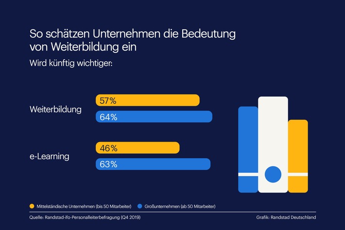 Eschborn (ots) – Noch nie haben so viele deutsche Arbeitnehmer im Home Office gearbeitet wie derzeit. Doch in der Corona-Krise ist die Auftragslage nicht überall gleich gut. So stehen viele Arbeitnehmer vor der Herausforderung, die Zeit im Home Office sinnvoll zu nutzen. Weiterbildung kann eine gute Möglichkeit sein, um auch zu Hause am Ball zu bleiben. Die aktuelle Randstad-ifo-Personalleiterbefragung (https://www.randstad.de/fuer-unternehmen/w issenswertes/randstad-ifo-Personalleiterbefragung) (4. Quartal 2019) zeigt, dass mehr als die Hälfte aller Unternehmen die Bedeutung von Weiterbildung für den zukünftigen Unternehmenserfolg bisher als sehr hoch einschätzten (59%).