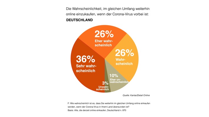 Stockholm (ots) – Eine von Detail Online im März diesen Jahres in Auftrag gegebene Kantar-Studie, die Europas größte E-Commerce-Märkte Frankreich, Deutschland und Großbritannien abdeckt, zeigt, dass der Corona-Ausbruch die Verlagerung vom stationären Einzelhandel in den Online-Handel verstärkt und zwar schneller als bisher prognostiziert wurde: Die Veränderung des Kaufverhaltens wird durch Corona innerhalb weniger Monate stattfinden statt wie erwartet in drei bis vier Jahren.
