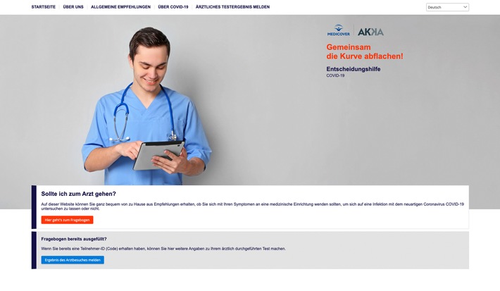 Sindelfingen (ots) – AKKA stellt der Öffentlichkeit ab jetzt eine Website mit Entscheidungshilfen im Falle des Verdachts einer COVID-19-Infektion zur Verfügung. Damit bietet AKKA jedermann eine verlässliche Orientierungshilfe, die für ein schnelles und zielführendes Handeln im Sinne des Gesundheitsschutzes aktuell entscheidend ist. Jeder kann sich auf Basis eines Fragebogens darüber informieren, ob sich bei eigenen Symptomen die Kontaktaufnahme mit einer medizinischen Einrichtung empfiehlt. Der Fragebogen ruht fest auf den Kriterien des Robert-Koch-Instituts (RKI). Diejenigen Nutzer des Fragebogens, die eindeutig Symptome einer COVID-19-Infektion aufweisen, erhalten auf Basis der Eingabe ihrer Postleitzahl die Kontaktdaten der nächstgelegenen, zuständigen medizinischen Einrichtung. Bei der Nutzung der komplett kostenfreien Website kann die Allgemeinheit auf höchste Datenschutzstandards vertrauen.