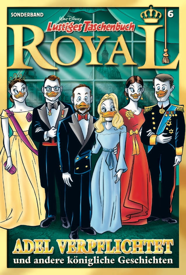 Das LTB Royal 6 „Adel verpflichtet und andere Königliche Geschichten“ (8,50EUR) mit sieben aufregenden Adelskapiteln auf einen Streich, inklusive Klatsch und Tratsch aus der Welt der Royals, natürlich erzählt aus der verlässlichen Entenperspektive.
