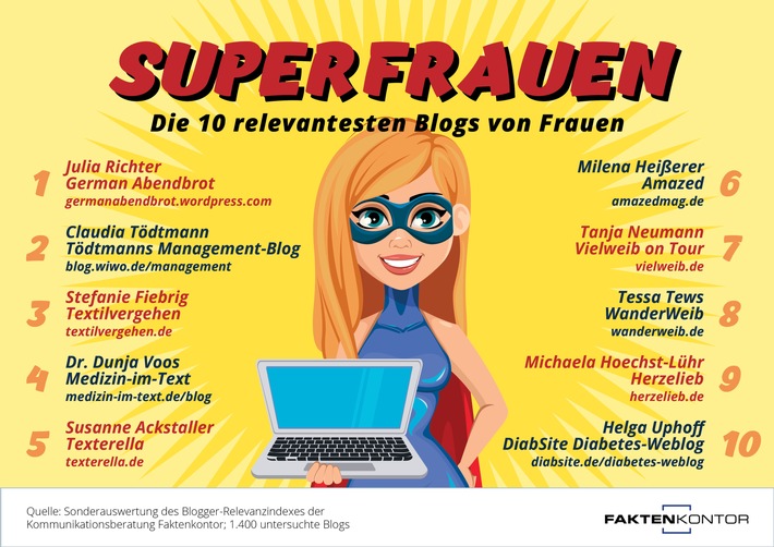 Hamburg (ots) – – Blogger-Relevanzindex liefert Ranking der 50 wichtigsten Blogs von Frauen