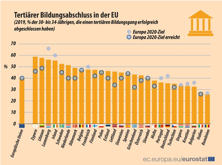 Europa 2020-Bildungsindikatoren im Jahr 2019: Die EU hat das Ziel für den Anteil der 30- bis 34-Jährigen mit tertiärem Bildungsabschluss erreicht