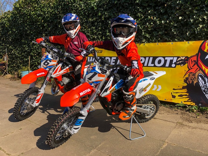Die sieben ADAC MX Academy-Stützpunkte im ganzen Bundesgebiet haben bereits im März jeweils fünf KTM SX-E 5 und fünf KTM 65 SX in Empfang genommen. Die Basis des Kinder-Elektromotorrades SX-E 5 – der Rahmen, die Federungselemente, Bremsen sowie das Bodywork und die Anbauteile – entspricht der des bisher eingesetzten Verbrenner-Modells und bleibt damit „Ready to Race“. Neben dem Elektro-Bike kommt die bewährte KTM 65 SX mit Verbrenner-Motor zum Einsatz. Insgesamt stehen in diesem Jahr rund 420 Plätze für Schnupperkurse zur Verfügung. Dabei wird den Kindern und Jugendlichen die gesamte Schutzbekleidung, vom Helm bis zu den Stiefeln, sowie das Academy-Motorrad zur Verfügung gestellt. Für den optimalen Schutz der Nackenpartie stellt Ortema neue Nackenschützer, damit bei den Motorrädern alles wie geschmiert läuft, stattet Motul die ADAC MX Academy mit den nötigen Schmiermitteln aus.