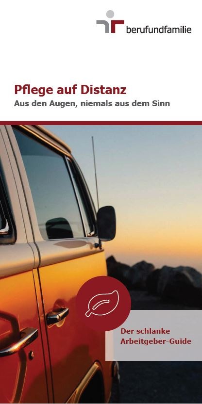 Erste Umsetzungshilfen und Praxistipps bietet die berufundfamilie Service GmbH mit der neuen Publikation „Pflege auf Distanz – Aus den Augen, niemals aus dem Sinn“, die sie am Internationalen Tag der Pflege (12. Mai 2020) herausgibt. Der schlanke Arbeitgeber-Guide soll dazu beitragen, die Informationslücke zu Pflege auf Distanz bei Arbeitgebern zu verringern. Die Publikation bietet nicht nur einen Überblick über derzeitige Definitionen, sondern schafft auch ein Verständnis für die vielfältigen Aufgaben und Belastungen der auf Distanz Pflegenden. Und vor allem hält dieser Arbeitgeber-Guide Relevantes für die personalpolitische Praxis bereit: Er benennt pflegebewusste Maßnahmen, mit denen Arbeitgeber Beschäftigte, die auf Distanz pflegen, gezielt unterstützen können.