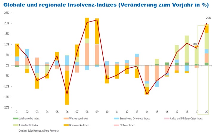 Weltweite Insolvenzen: +20% mehr Pleiten für 2020 erwartet – in Europa +19%