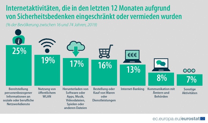 Einer von vier EU-Bürgern vermied wegen Sicherheitsbedenken die Bereitstellung personenbezogener Informationen an soziale oder berufliche Netzwerkdienste